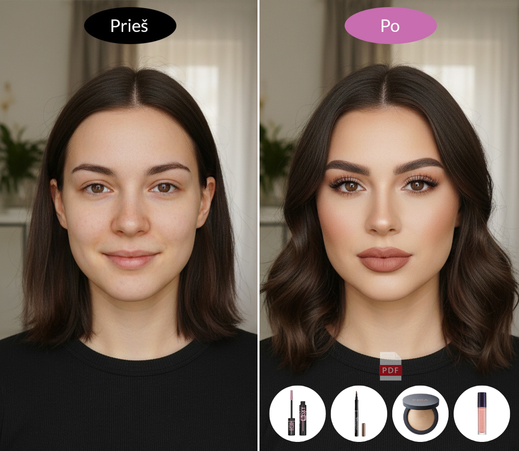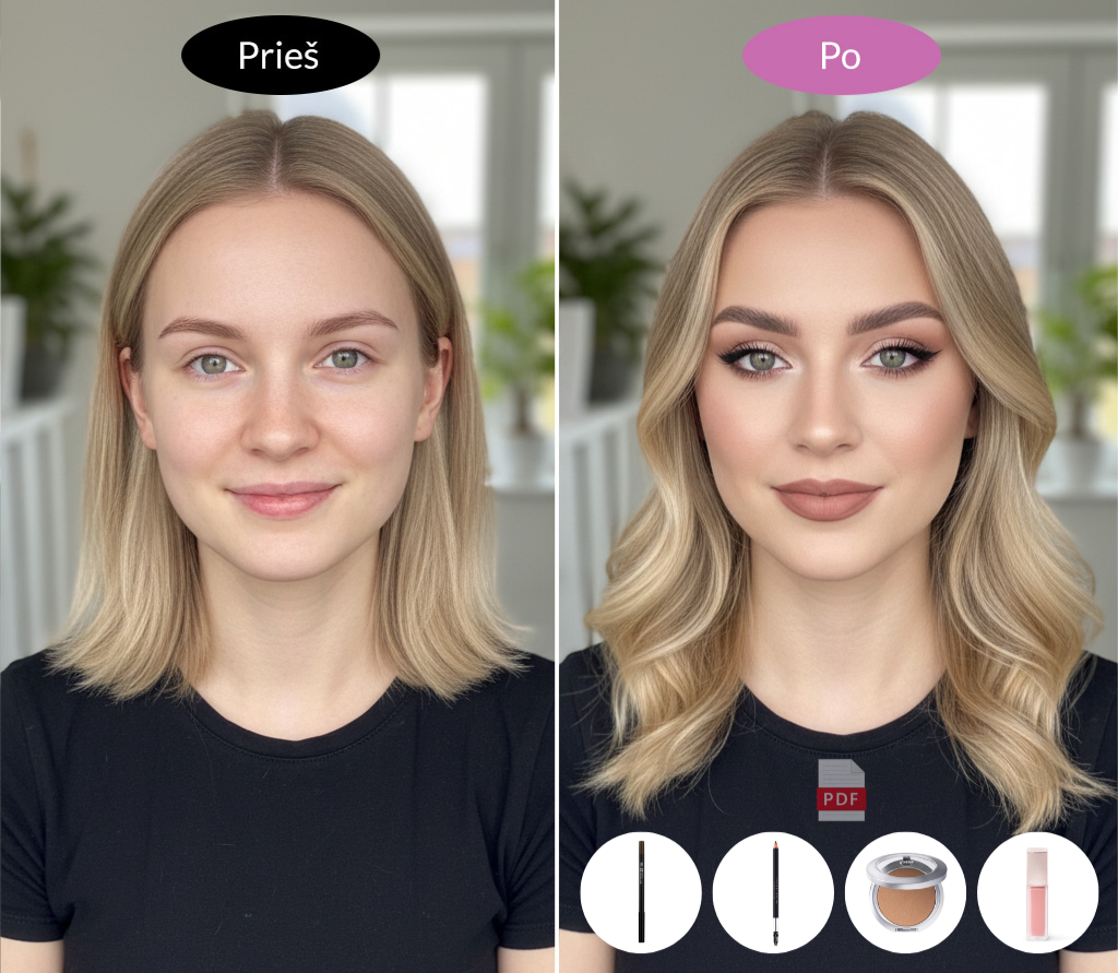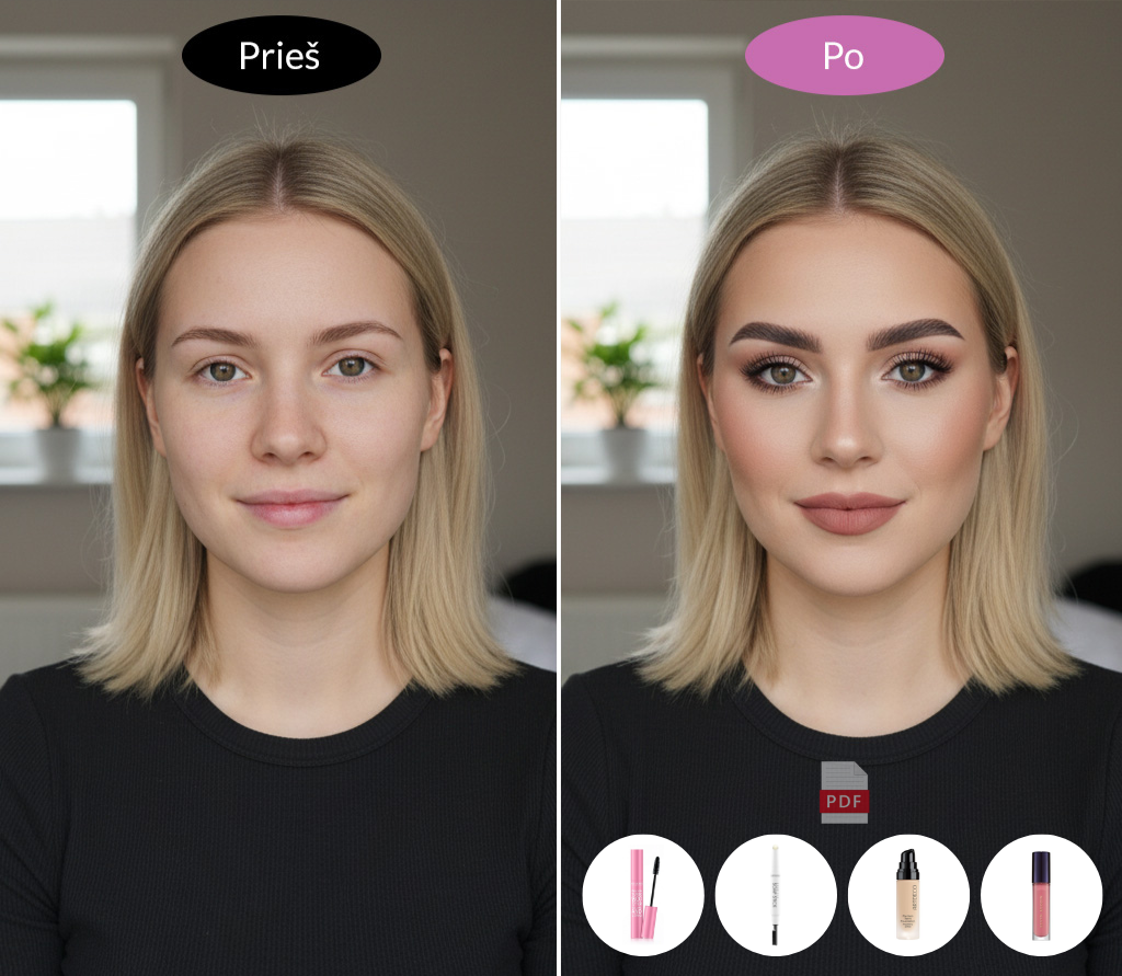 Tai apima virtualų makiažo vaizdą ir tau pritaikytų produktų rekomendacijų sąrašą (PDF formatu).